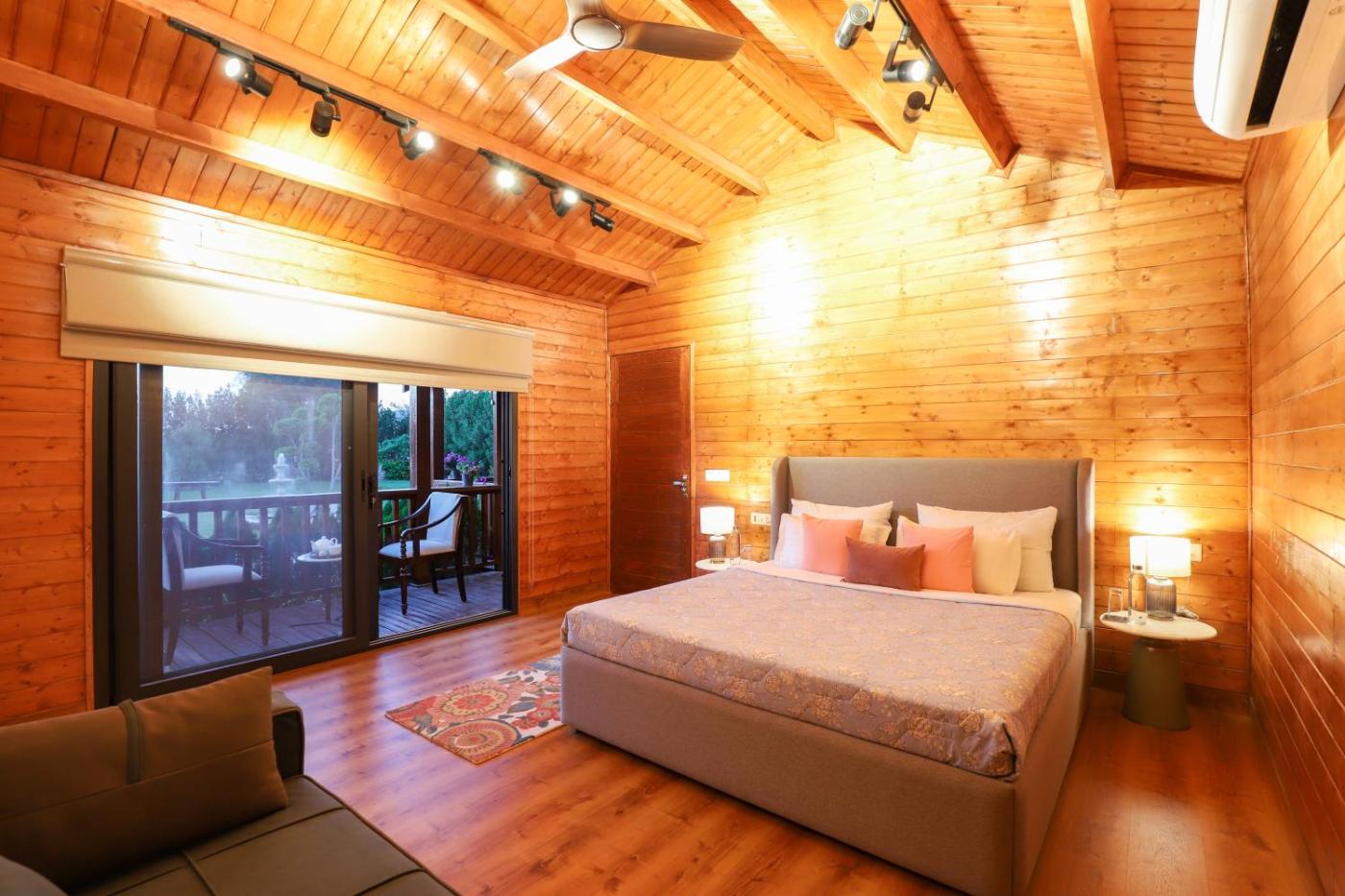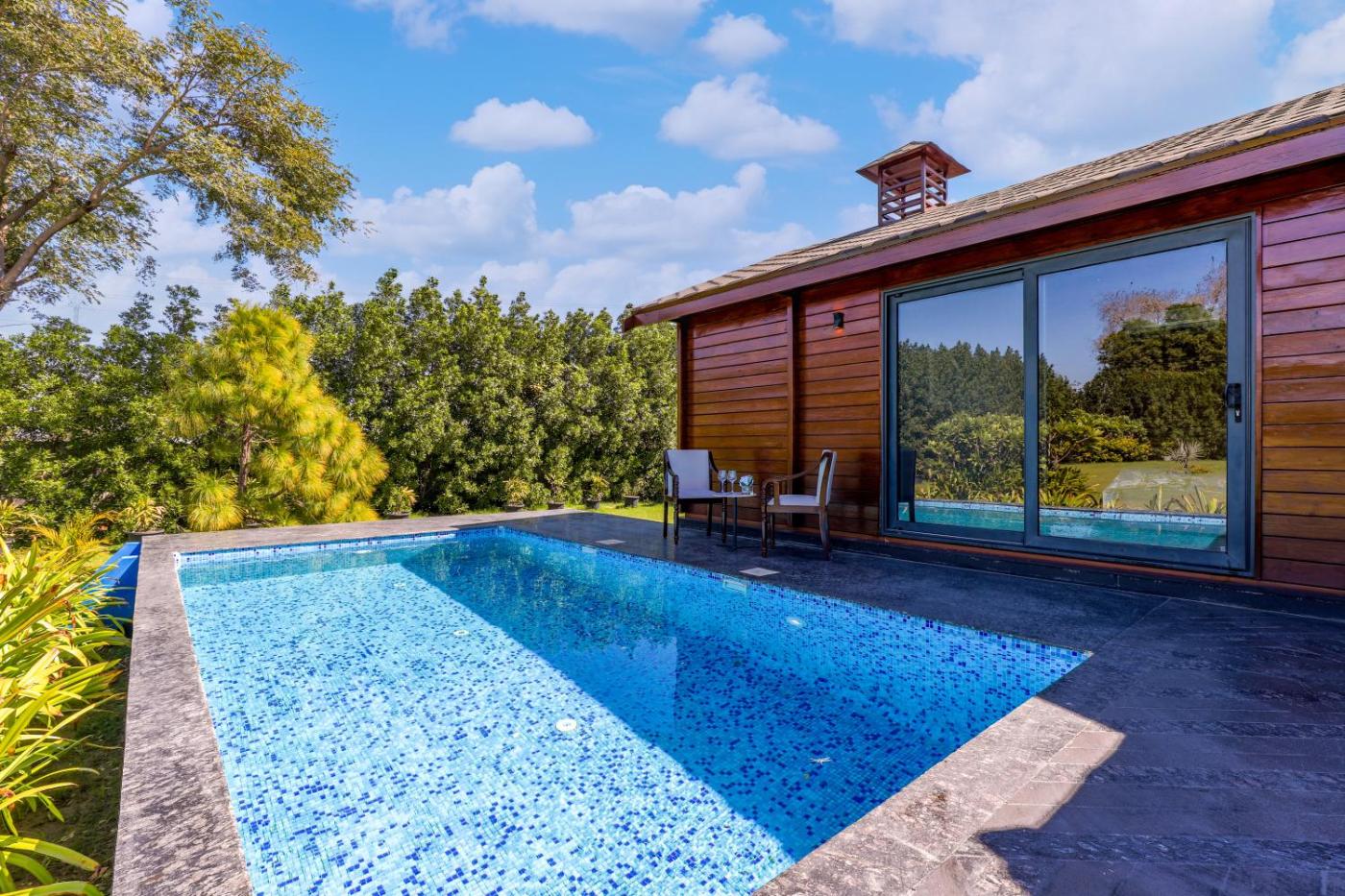 ELIVAAS Riveira Hills - 3 BHK Wooden Cottage with Lush Garden, Pvt Pool isin Alwar. Free WiFi is at guests disposal throughout the property.