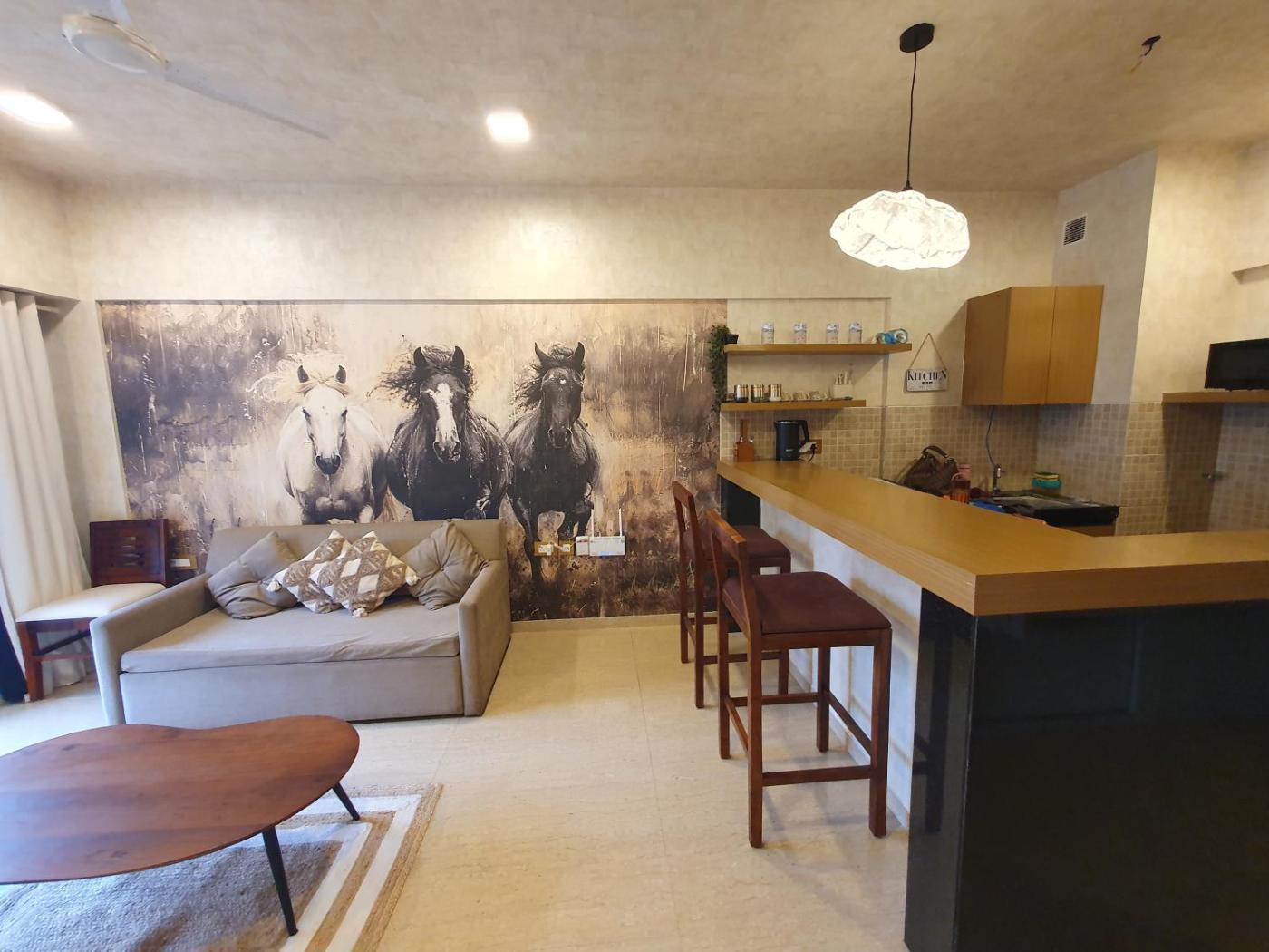 20 km from University of Pune in Dehu Road, Boho Vibes with Golf Course Lodha belmondo offers accommodation with access to spa facilities, beauty services and fitness room. Among the facilities of this property are a restaurant, a lift and full-day security, along with free WiFi throughout the property. Free private parking is available and the apartment also provides bike hire for guests who want to explore the surrounding area.