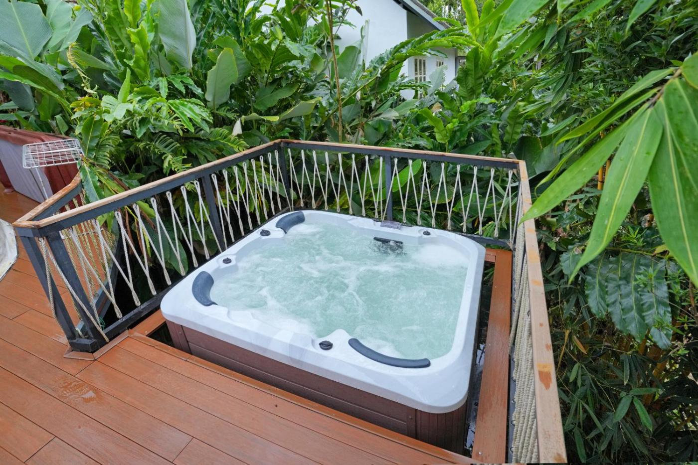 Tent. The hot tub and spa bath are the standout features of this tent. This air-conditioned tent is comprised of a flat-screen TV with streaming services, a private bathroom as well as a balcony with garden views. The unit has 2 beds.