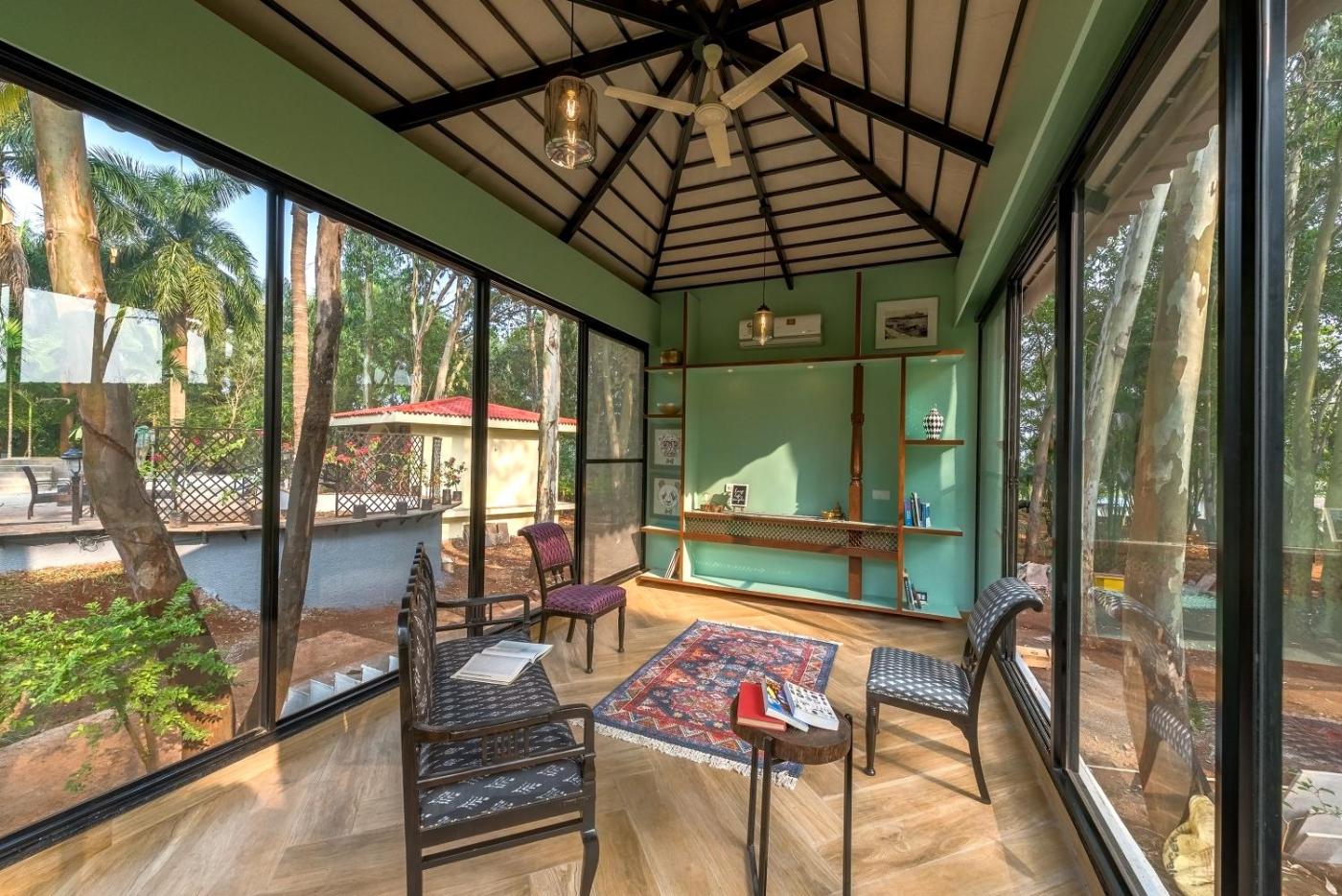 SaffronStays Foresta by the Lake - 6BR veg-only pool estate with lake views, lawns, gazebo & sports court in Kamshet
