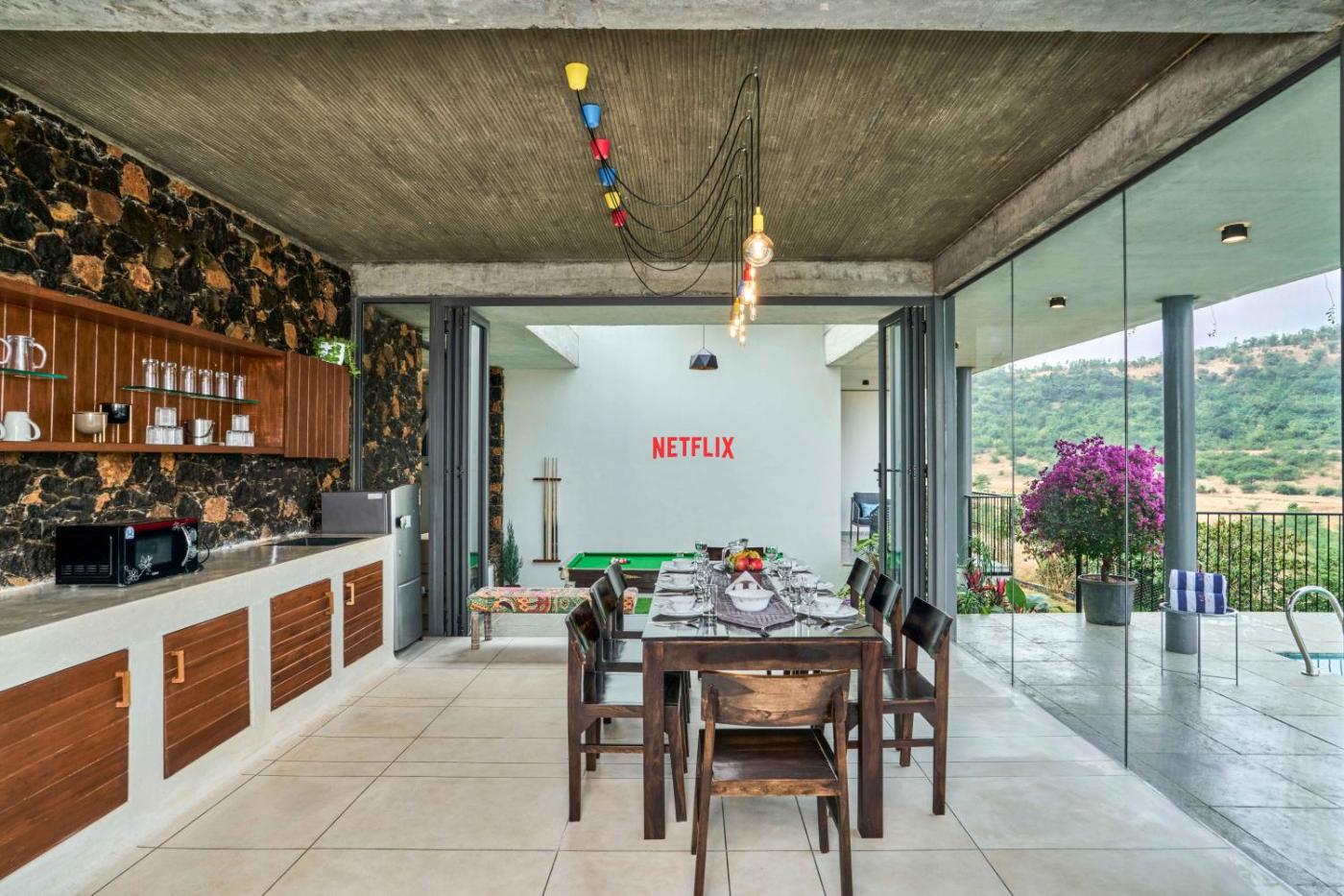 For guests with children, SaffronStays AnjanAiry offers an indoor play area. The villa also comes with outdoor fireplace and a picnic area for a day out in the open.