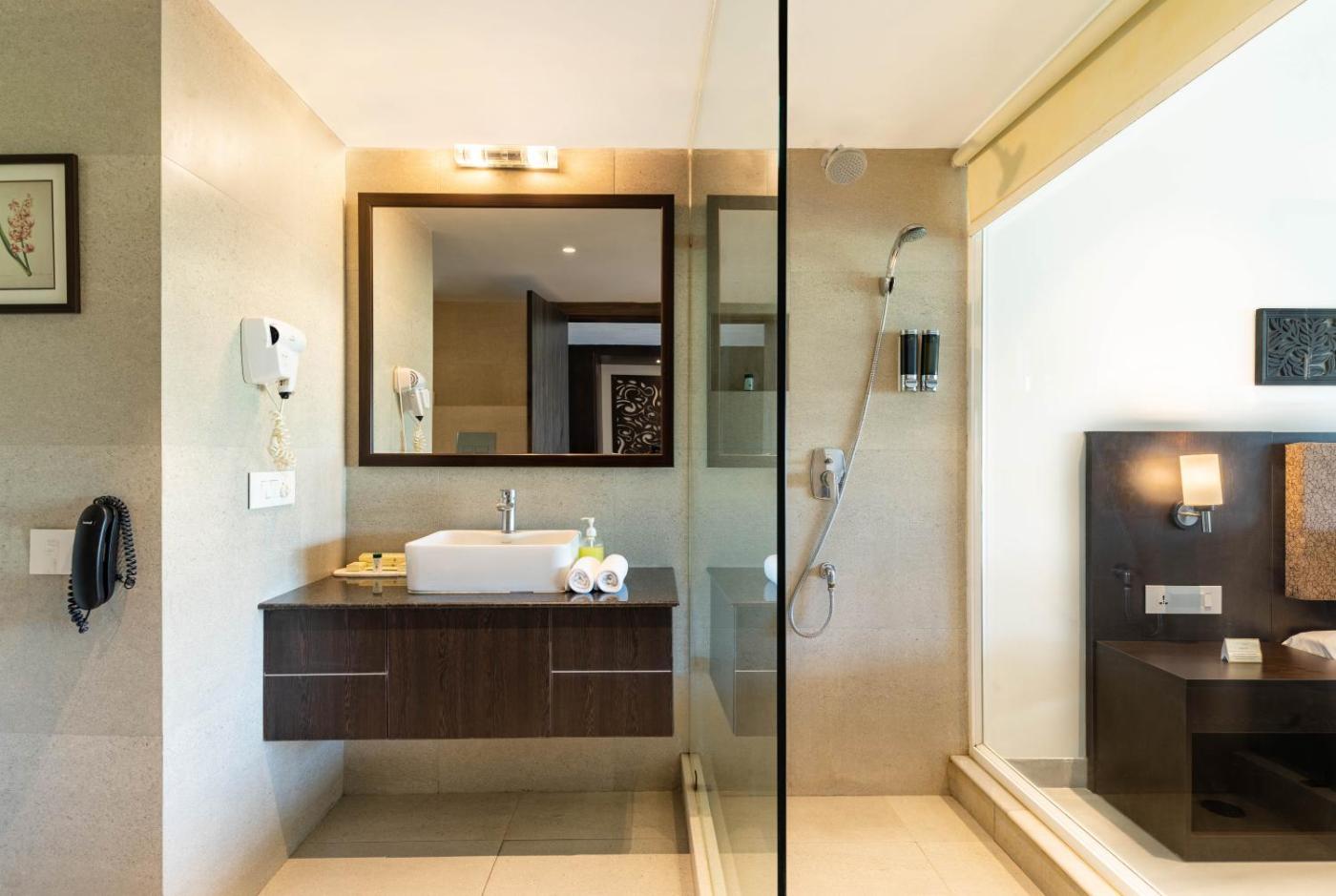 Premium Room by the Pool: Early Check-In upto 3 hours (subject to availability), Complimentary Hi-Tea serComplimentary Hi-Tea served with Cookies, Veg Snack(s), Complimentary Cricket. Providing free toiletries and bathrobes, this double room includes a private bathroom with a shower, a hairdryer and slippers. The spacious air-conditioned double room provides a flat-screen TV with cable channels, a private entrance, soundproof walls, a minibar as well as pool views. The unit offers 1 bed. ;